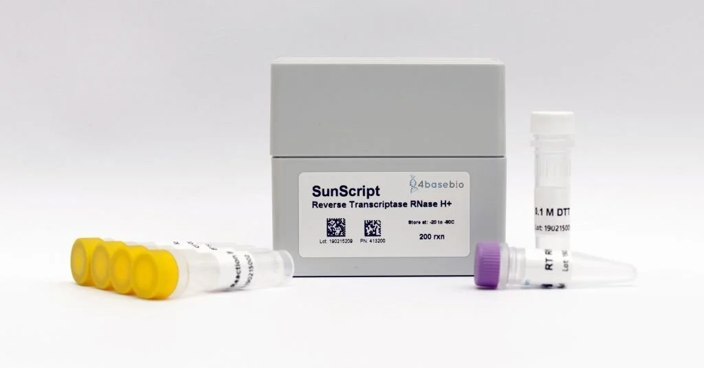4basebio’s 4BB™ SunScript® Reverse Transcriptase is a novel, highly thermostable reverse transcriptase engineered from HIV-1 RT, allowing reaction temperatures up to 85°C, RNA and DNA dependent polymerase activity and offering improved efficiency of cDNA synthesis.